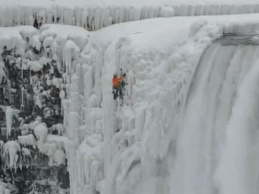 This afternoon I enjoyed my virtual trip to Niagara Falls. Some people, though, want to do more than that. This month a professional ice climber named Will Gadd decided to be the first-ever to climb the ice-falls, and he carefully picked his way from bottom to top. I heard him marvel over the astounding beauty of his experience. He labeled it, “one of the highlights of my life.” Surely this brought a smile to the Creator.