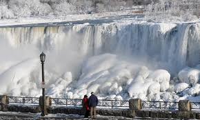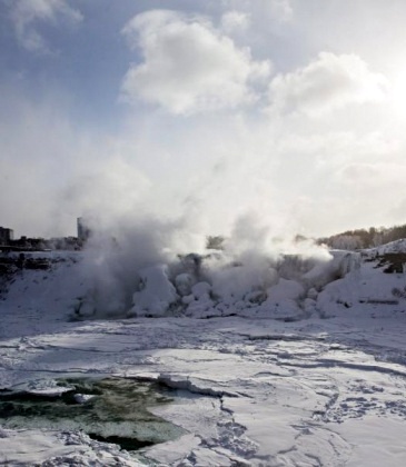 Later, I watched a short online video of something else that’s been frozen mid-tumble: the mighty Niagara Falls. Due to unprecedented sub-zero temps, the crashing water at the bottom has morphed into massive marshmallow-like sculptures of ice like never before.