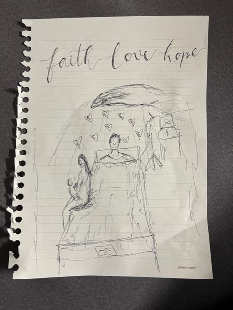 When Nelson was hospitalized, Ann Sophie sat nearby and sketched what she was thinking and seeing. Here’s the result.
