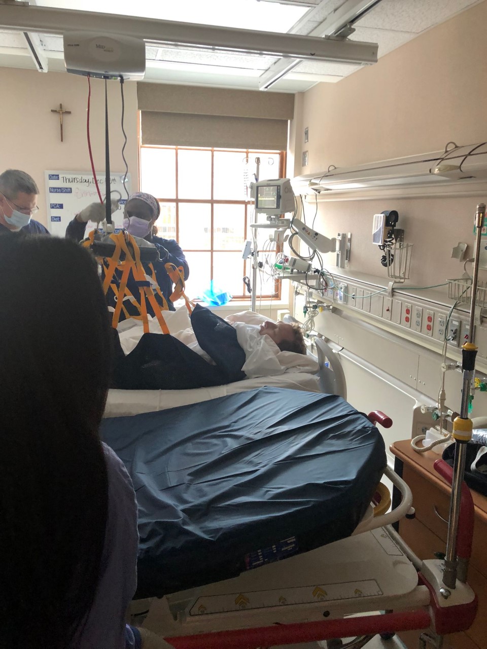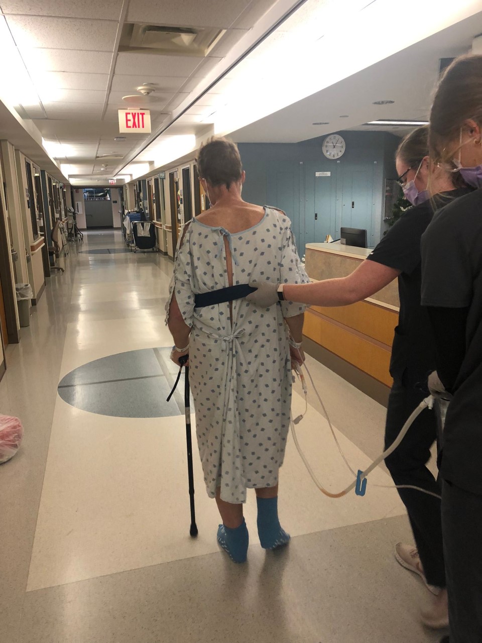 Doctors weren’t sure he could withstand surgery because of his many risk factors, especially his breathing issues, but there wasn’t much choice. So yesterday they operated, putting a long rod into his thigh and stabilizing his hip so it won’t fully break. Nelson did great after the surgery, and Ann Sophie has been in there fighting for her husband’s welfare at every turn, morning, noon and night.