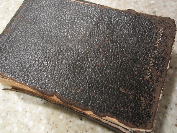 Several years ago a family friend, Sally, offered to go through Mary’s bins and condense everything into two 9” x 12” albums, one for Dad’s side of the family and one for Mom’s. She scanned or photographed everything so that even bulky items morphed into crisp, flat notebook pages. She also typed up old hand-written letters, some over 100 years old, to place alongside originals, which in some cases included translations from other languages.