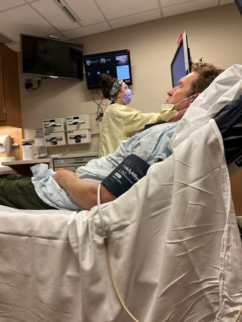 Sitting in this hospital room for the second night trying to get a handle on the vomiting and pain caused by opiates and fluid in my lungs. They’ll put a stint in tomorrow morning so I can drain it on my own.