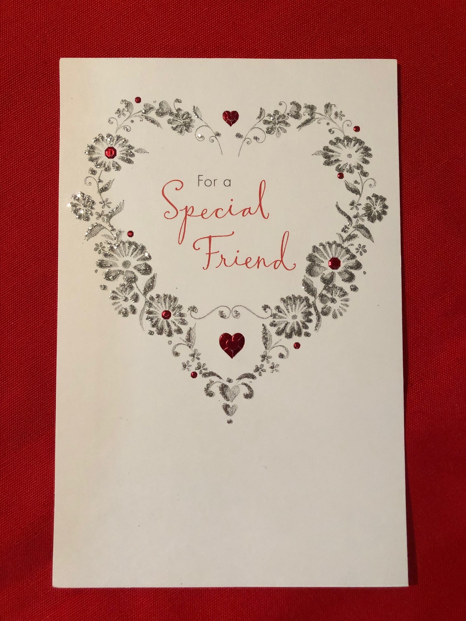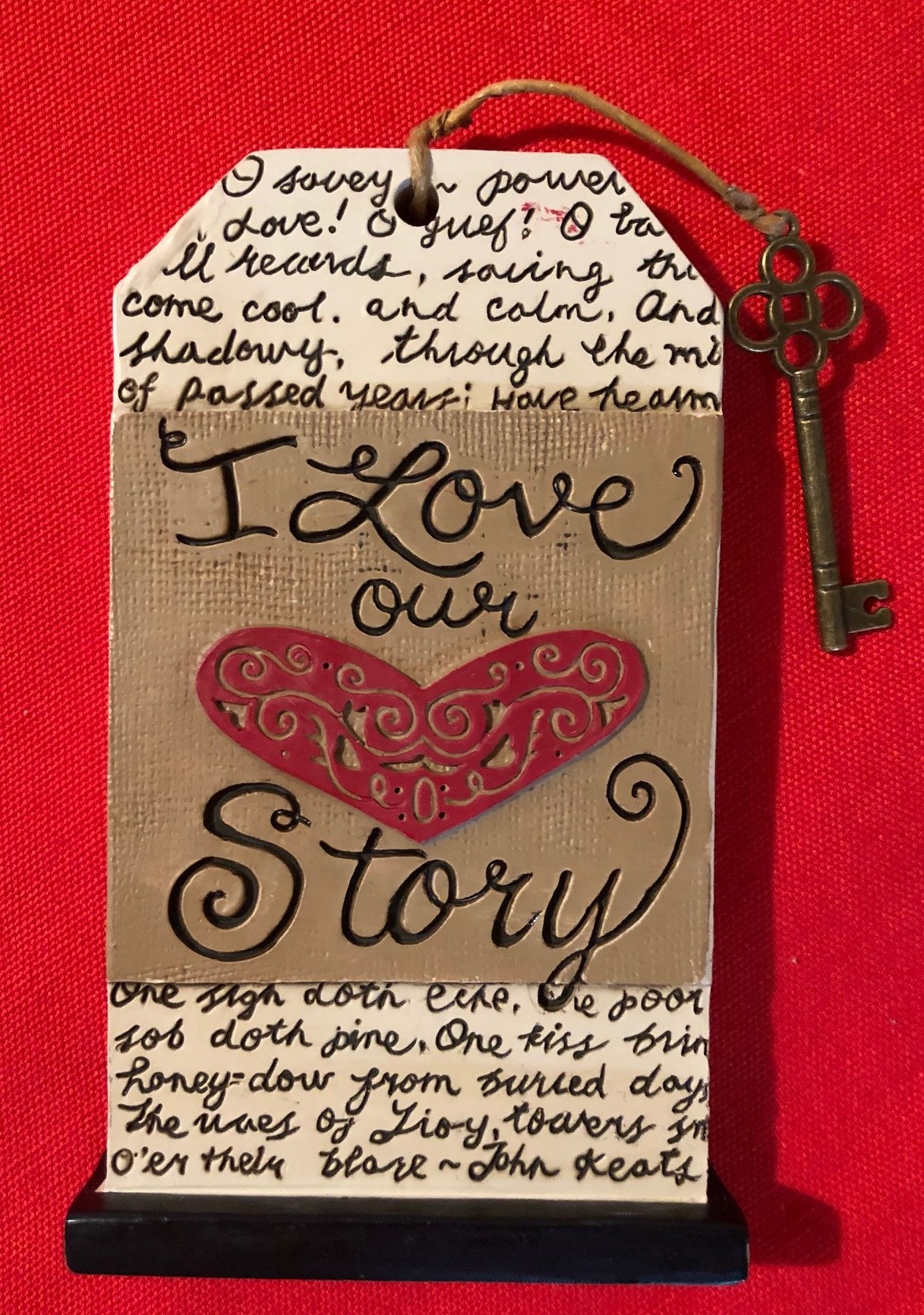When I turned over Linda’s gift, I found a lacy red heart and the words, “I love our story.”
