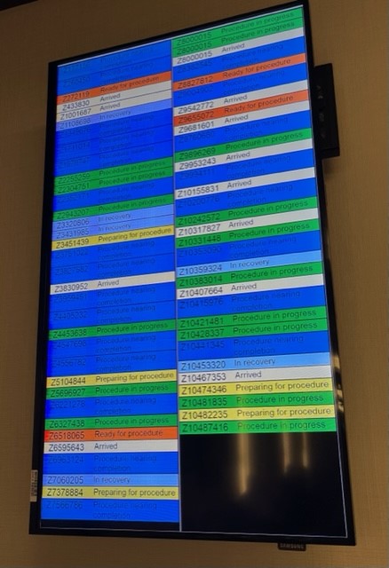 We started with early alarm clocks and Nelson’s first medical commitment of the day at 7:45. This was tricky, because after yesterday’s surgery to put a stent into his vein, in the morning he was still a patient at the hospital. We asked if today’s early appointment could be moved to another day so he could rest a few hours more, but at Mayo Clinic, appointments with doctor-experts are hard to arrange and must be kept. (That was like falling Domino #1.)