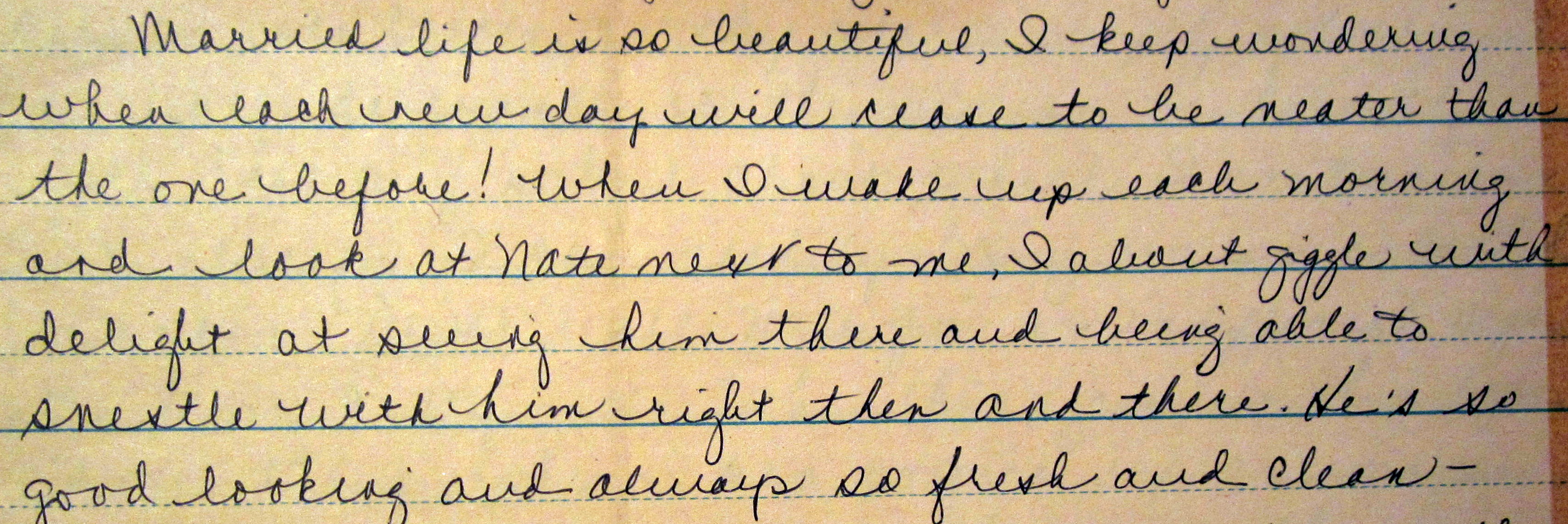 Married life is so beautiful, I keep wondering when each new day will cease to be neater than the one before! When I wake up each morning and look at Nate next to me, I about giggle with delight at seeing him there and being able to snestle with him right then and there. He’s so good looking and always so fresh and clean —
