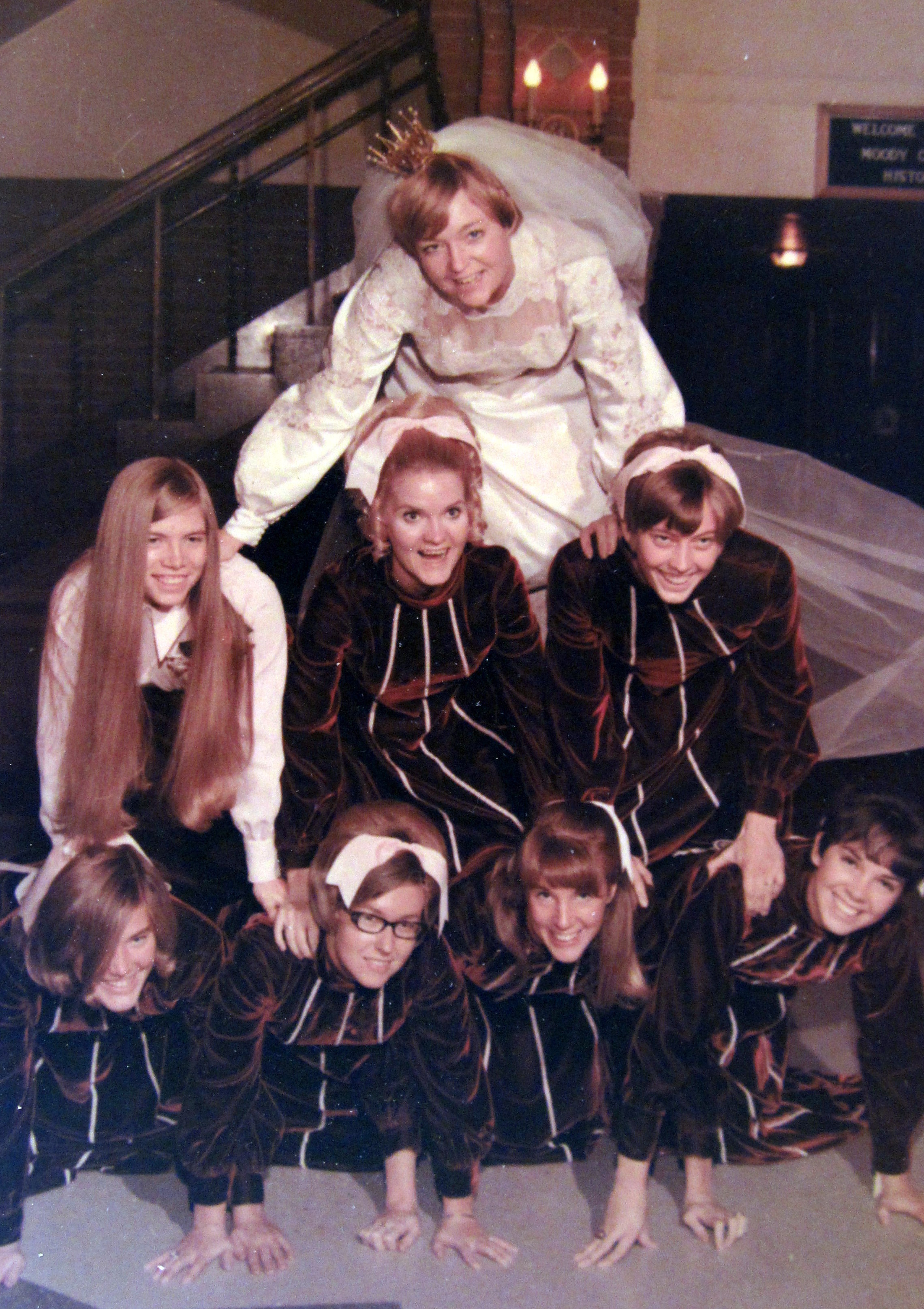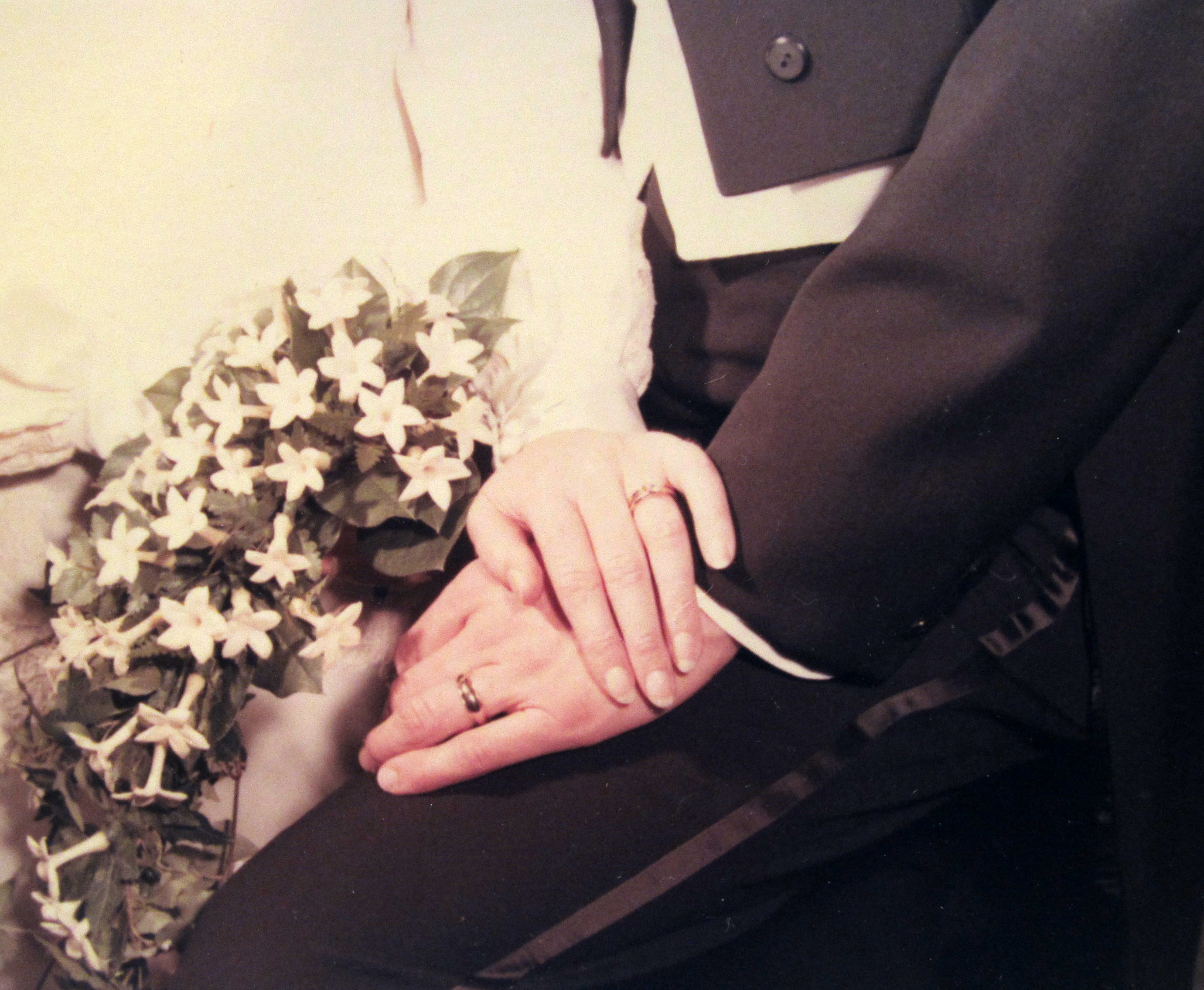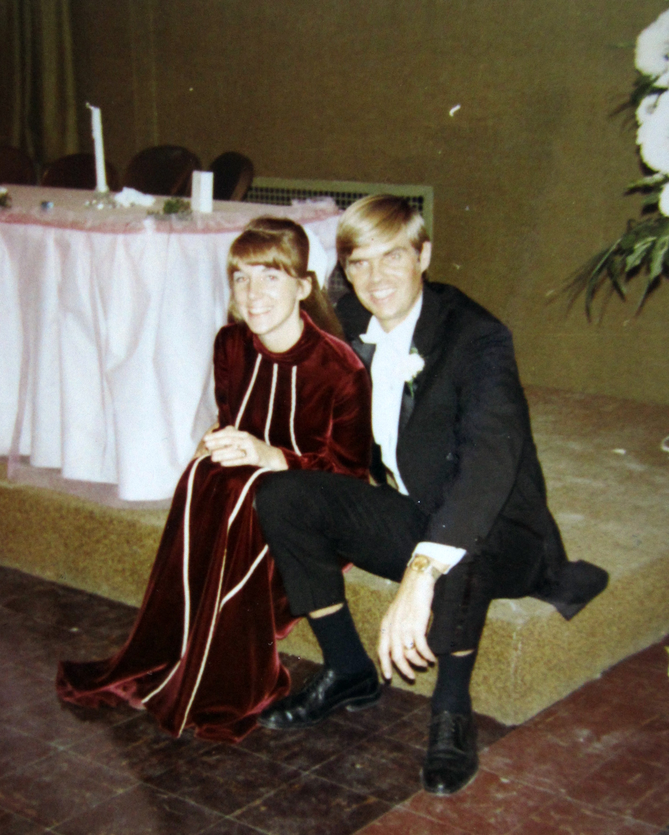 I wiggled out of my gown in the back seat and slipped into my blue coat, buttoning it to the chin. How appropriate, I thought. I’m wearing the same “outfit” on our wedding night that I wore on the night we met….