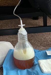 By measuring the amount of drained fluid his lung produces each day, we can determine if the chemo and immunotherapy are eliminating cancer cells or not. Today is Day #4 of the daily drainings, and the amount has, indeed, lessened slightly every day.