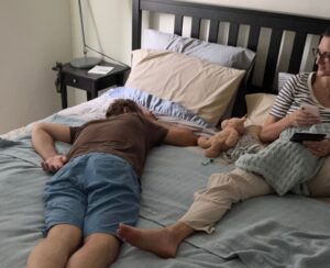One of the disadvantages of shallow, ineffective breathing has been Nelson’s inability to sleep lying down. The lung fluid tends to do just what a bottle of water does when put on its side–level out toward his throat. In that process, he quickly feels  like he’s drowning…thus nights on the couch.