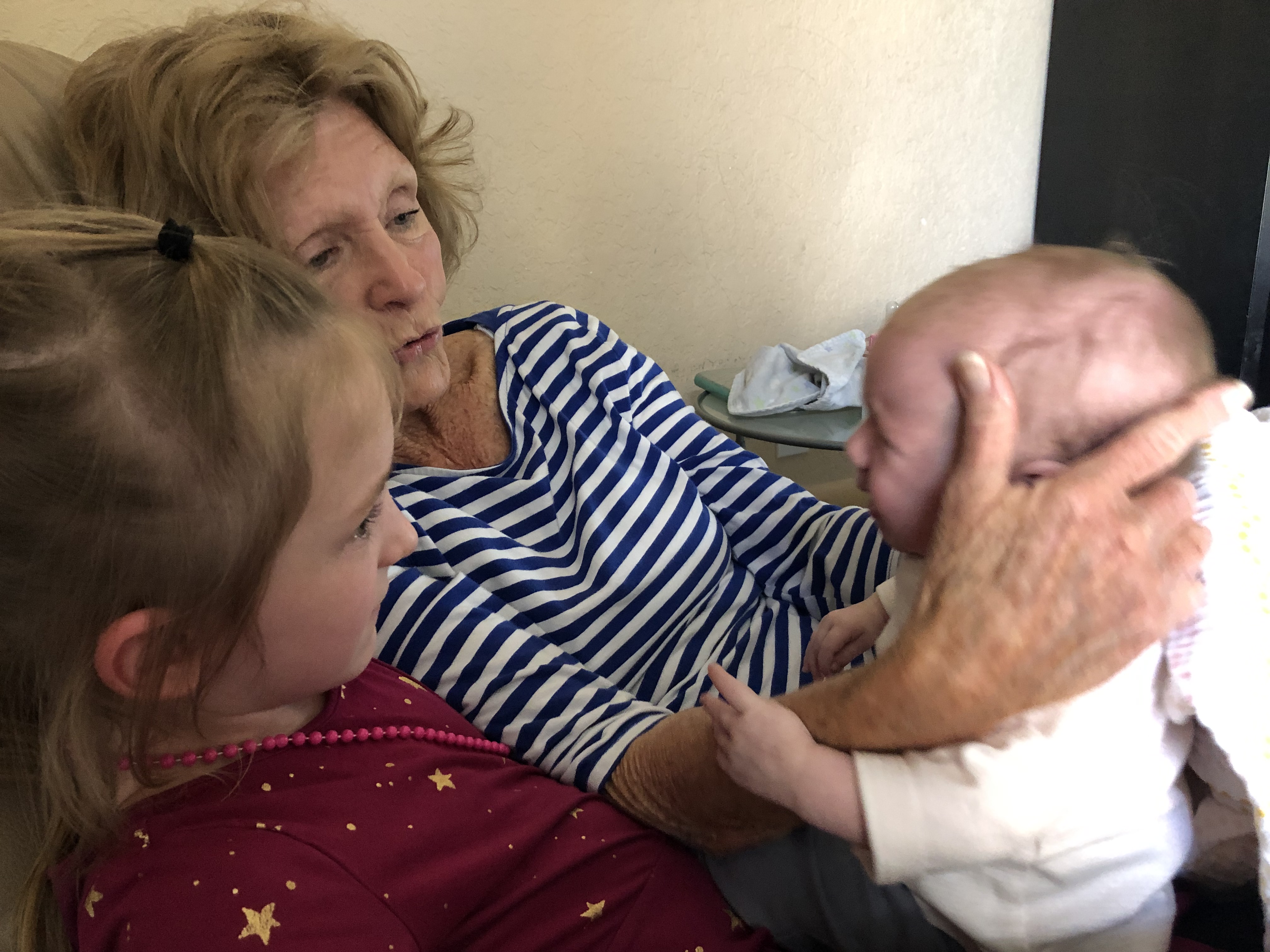Recently granddaughter Emerald’s parents let me take her on a flight to Florida where daughter Linnea, her husband Adam, and their six children live. Baby May was born in January, so our trip was a chance to see how she’d grown and to catch up with all the others. It would also be a chance for Emerald to spend time with half of her faraway cousins.