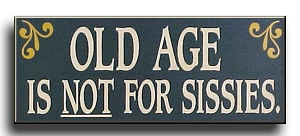 She handed me a luncheon-size napkin with a cartoon and a pithy saying on it. Two old ladies were sitting together on a park bench, and one was saying to the other, “Old age isn’t for sissies.”