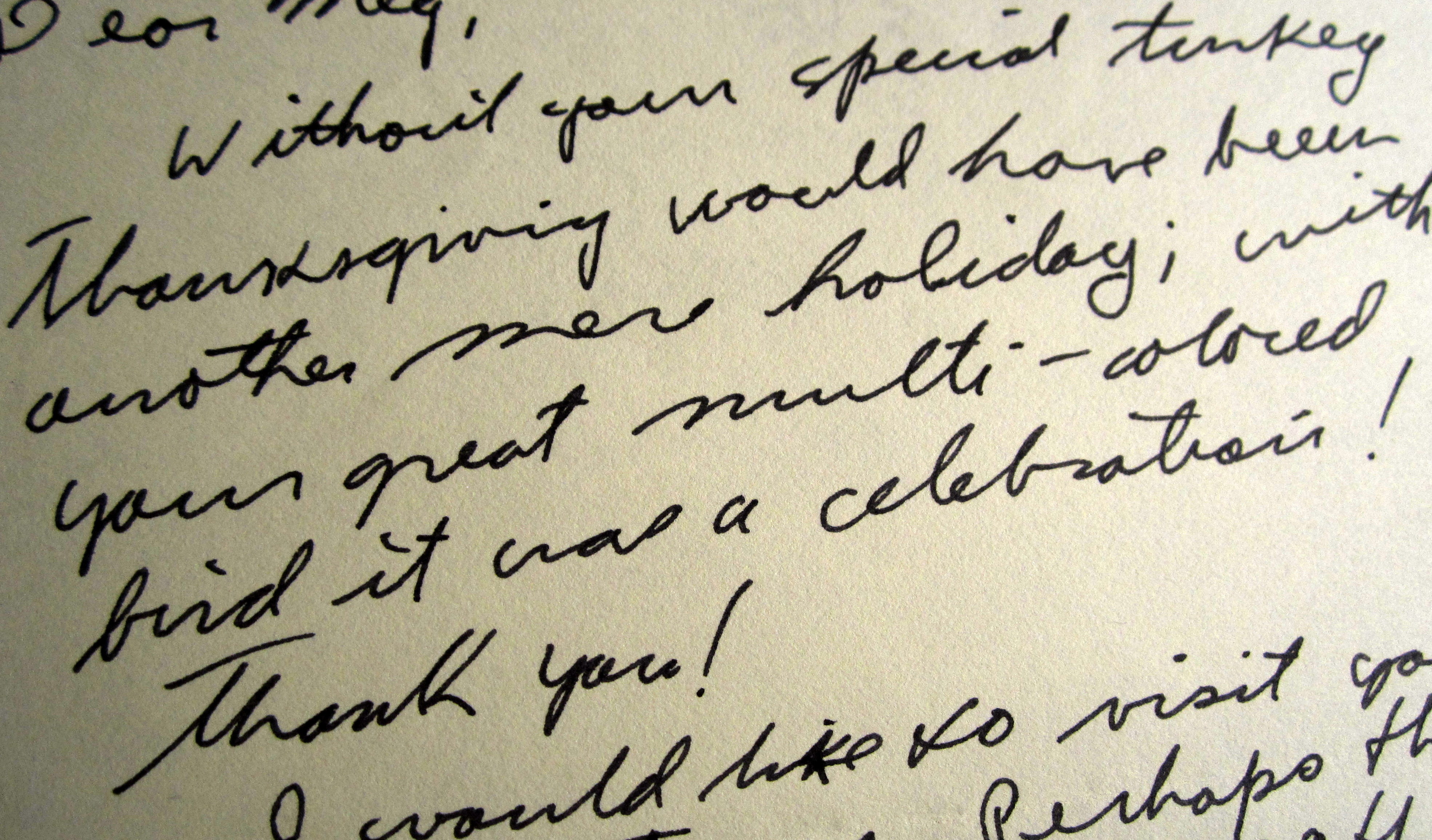 the-holidaysNov. 29, 1968 – Dear Meg. Without your special turkey, Thanksgiving would have been another mere holiday; with your great, multi-colored [paper] bird, it was a celebration! Thank you! I would like to visit you after Christmas. Perhaps the weekend of Dec. 27th-28h? How is that for you? By the way, after this semester, law school is half over.